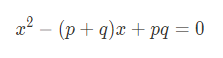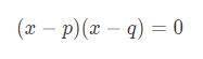 이번에는 근이 p, q 인 이차방정식을 만들어 봅시다: